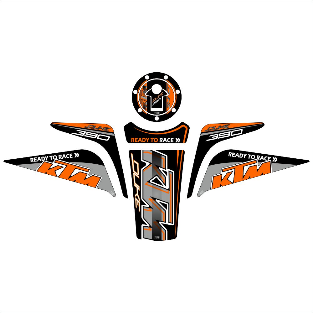 KTM 390 Duke 2022 szett. Öntapadós PVC print, átlátszó műgyanta borítással, 3D sticker, térmatrica.